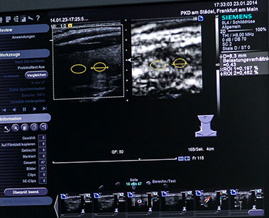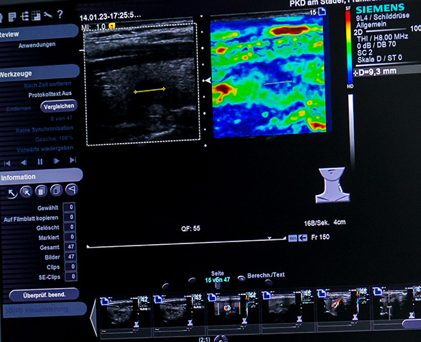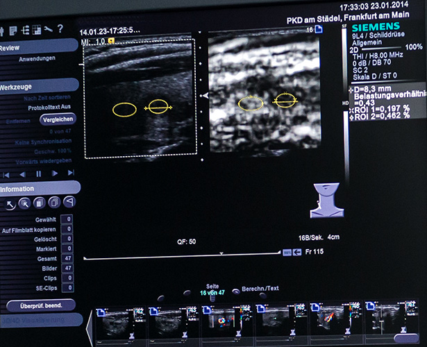 In dem Fachgebiet der Inneren Medizin werden vor allem die Schilddrüse und die Leber mit diesem Verfahren untersucht.